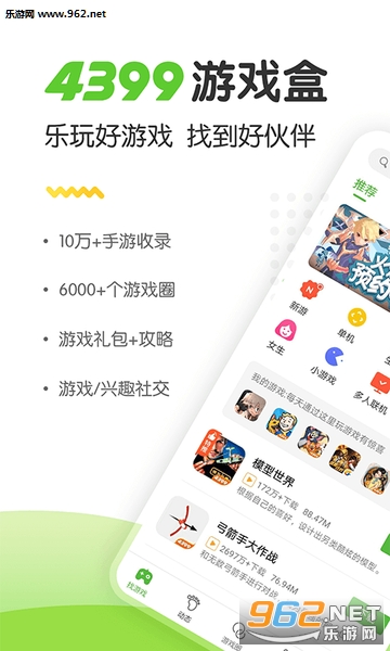 4399游戏盒是4399官方倾力打造的一款精品手机游戏平台,集游戏推荐、大神攻略、万千礼包、火热论坛、兴趣社交于一体。具有用户免费体验、好友互动交流、游戏圈讨论求助、展示个人风采等诸多特点,您可随时随地一键安装,海量游戏经由玩家强力推荐、精彩游戏视频解说、最全游戏攻略评测、最火游戏社区,让玩家畅游其中,百玩不厌!