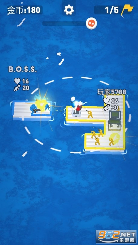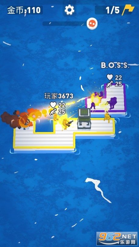 非常有趣好玩的io竞技休闲游戏,所有的战斗都是在海上打响的,士兵会散步在木筏之上,所以我们需要不断扩大木筏的面积,这样就能容纳更多的士兵,战斗实力才能变强,才能夺取更多的海域。