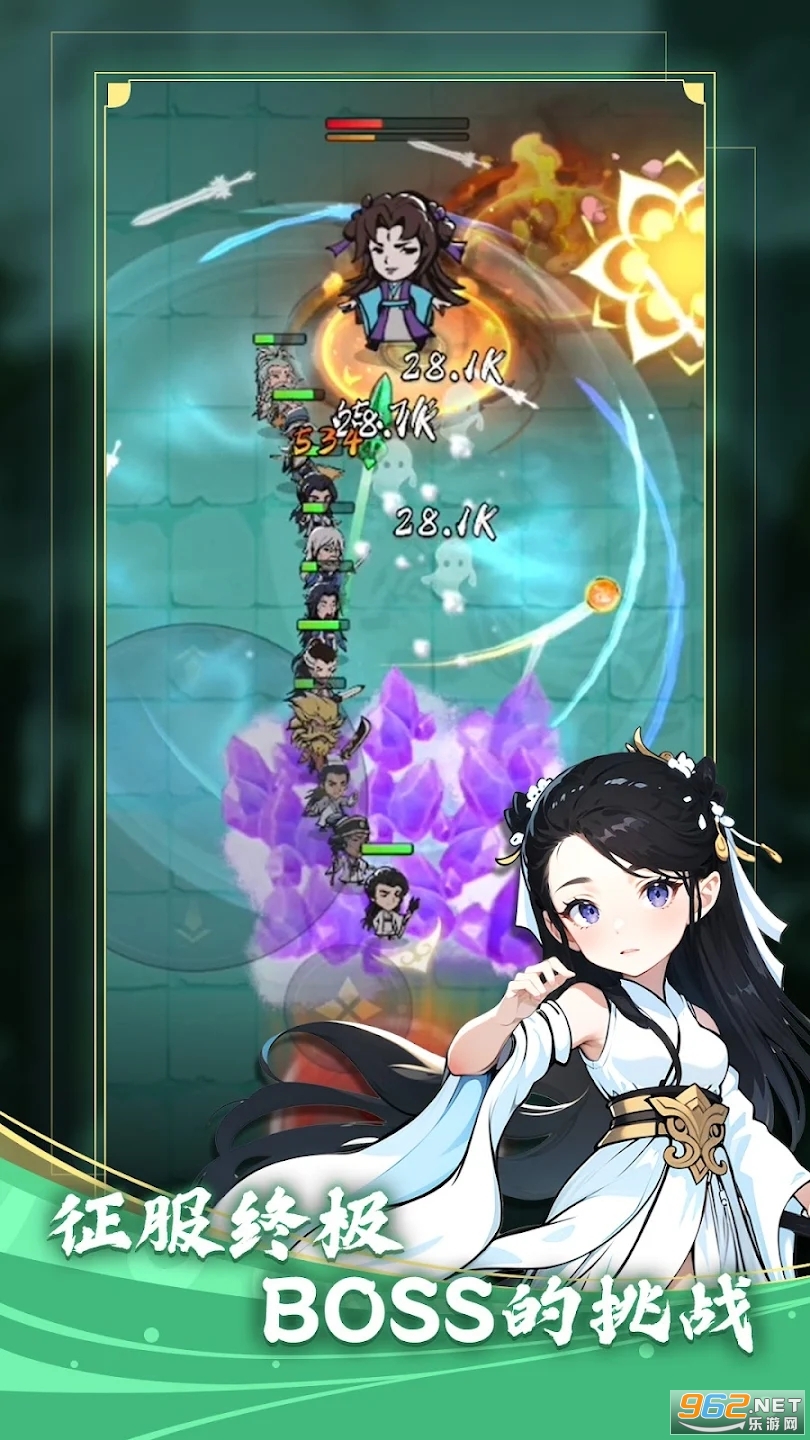 玩家将控制一条由江湖侠客组成的队伍, 抵御敌人的疯狂进攻并生存下来! 与普通的割草游戏也不同, 面对敌人的疯狂进攻, 策略为上, 拒绝站桩! 在众多敌人的围攻中生存下来, 快来体验刺激又与众不同的贪吃蛇玩法吧.