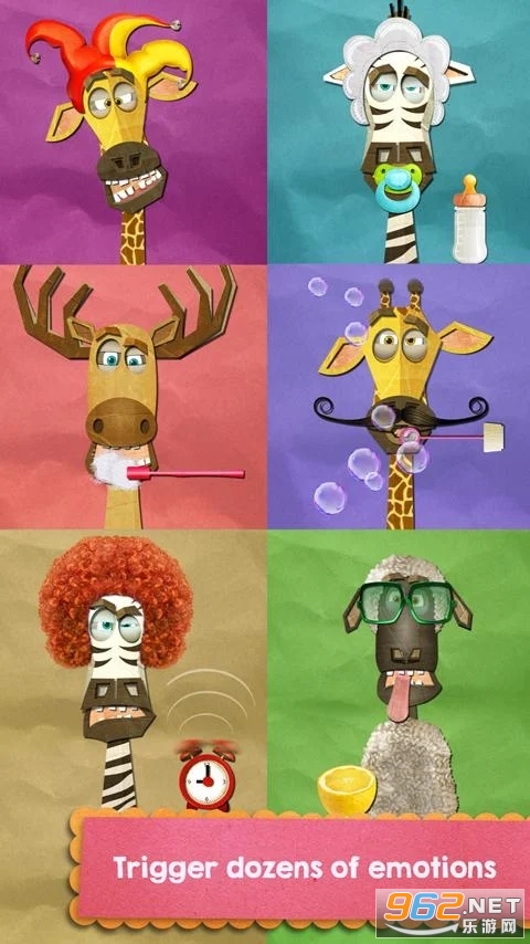 这些动物具有很强的个性,能在不同的情景中表达不同的情绪。它们听到号角或警报声时会跳起来。它们悲伤时耳朵扁平并且平耷拉下来。让它们的眼睛转动,可听到它们高兴地咯咯笑。当孩子们将长颈鹿变成迪斯科舞星,在墨西哥嘉年华上和斑马嬉戏,让绵羊住在自己的城堡或看着麋鹿潜入水中时,您会看到孩子们高兴地边笑边跳,千万不要惊讶哦。本应用程序可谓寓教于乐。