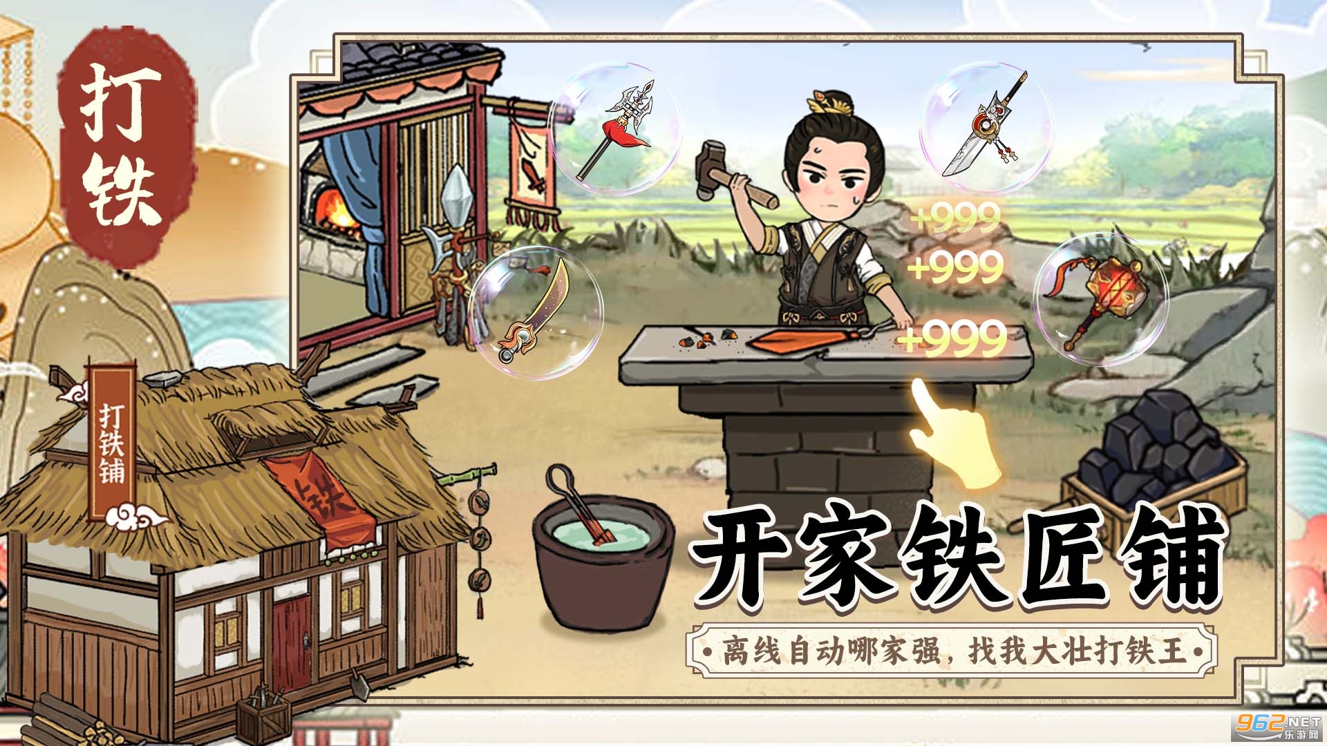 打造绝世好刀:通过不断点击屏幕赚取金币,购买更好的材料和工具,提升铁匠技艺,打造出越来越强大的武器。