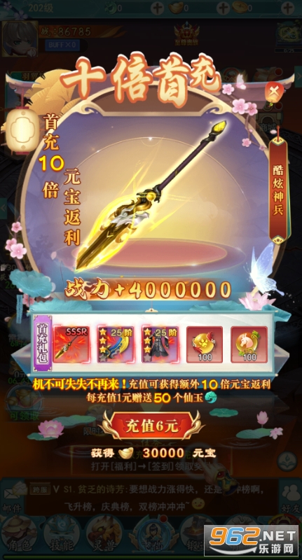 ★上线福利:送SVIP10、648元充值卡,SR极品时装、超级经验丹*5200