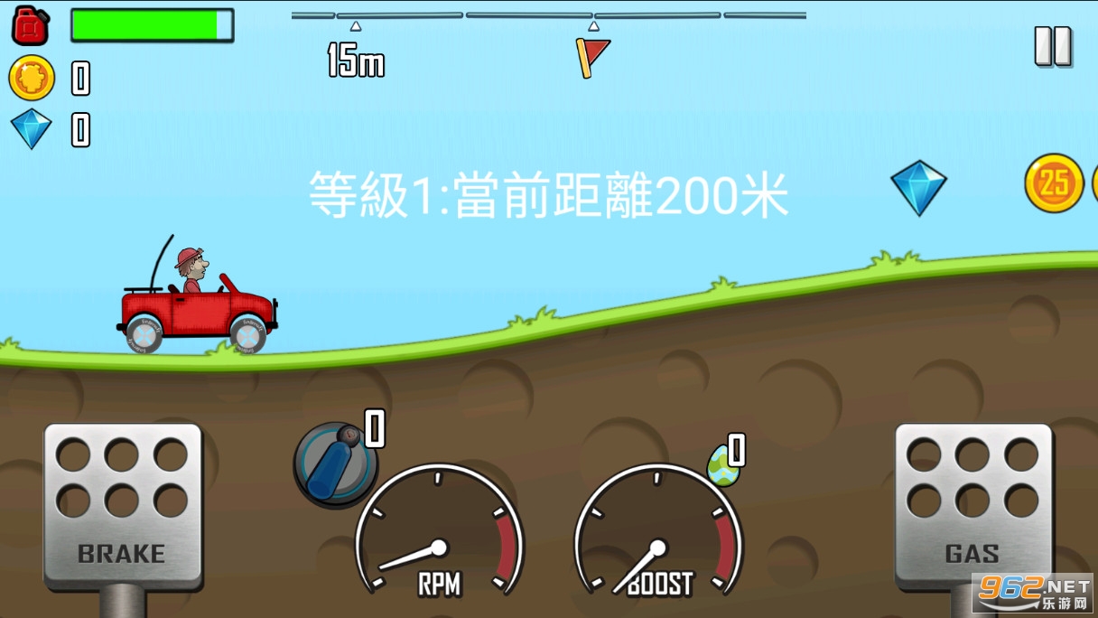 游戏会记录玩家每个关卡到达的等级和最大距离,用获得的奖金可以在在车辆选项里面换新车