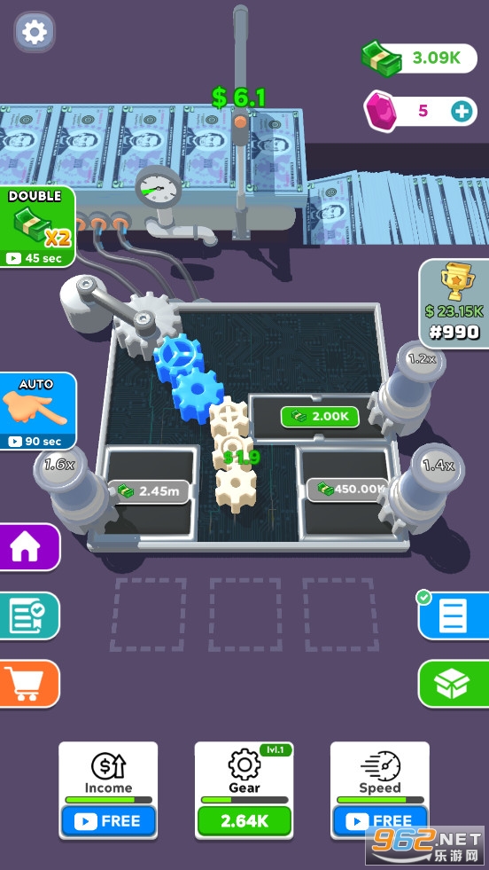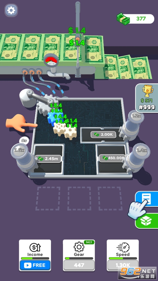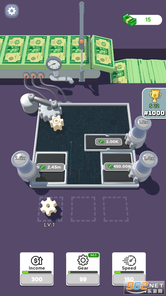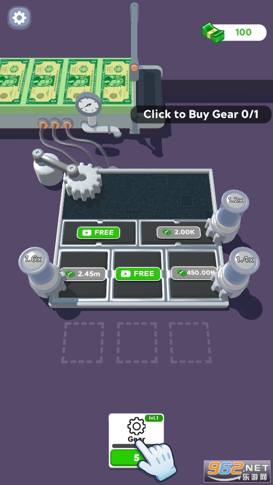 没有齿轮就没有收益,放置齿轮并开始赚钱!合并装备以升级它们并获得更多。