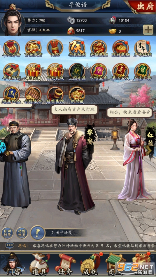 在养成方面,玩家可以通过培养人才、完成任务等方式提升角色的等级和能力。随着角色的成长,玩家可以解锁更多的技能和装备,提升角色的战斗力和政治影响力。