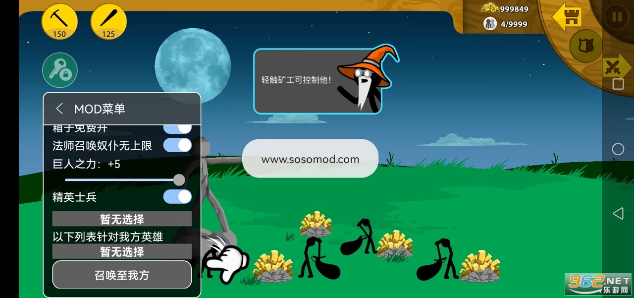 火柴人战争无限钻石版最新版是一款非常具有挑战性的策略游戏。你拥有每个火柴人的控制权,控制你的军队组成编队或指挥单个单位进行建造、攻击敌人、开采黄金、学习剑术等,通过训练弓箭手、法师,甚至巨人来摧毁敌人的雕像,占领所有的领土。游戏中可以无条件使用钻石,快来下载吧!