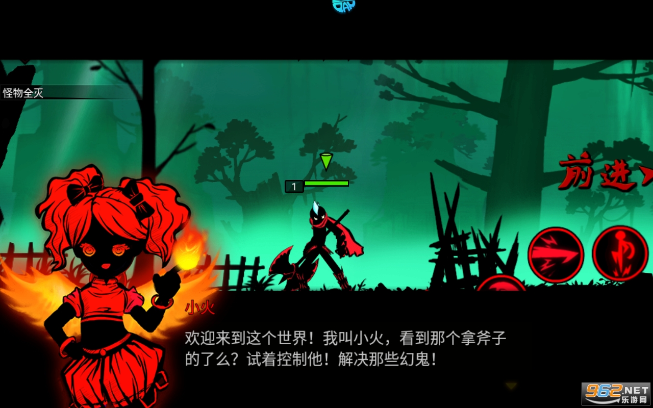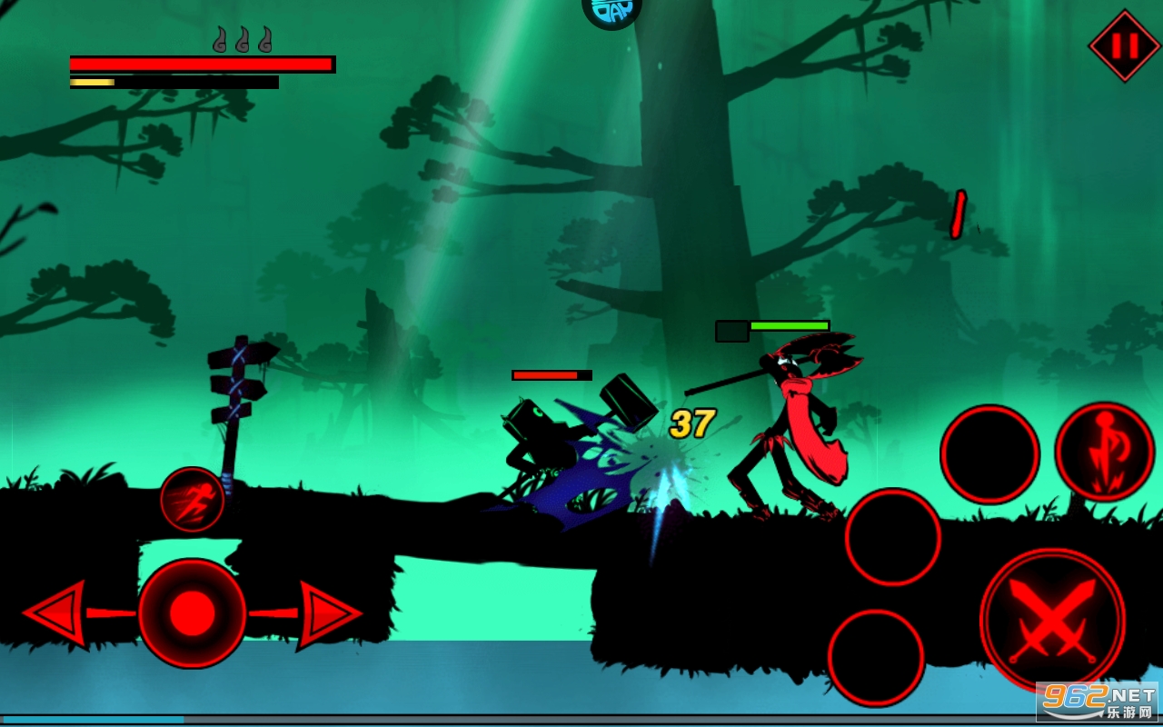 《火柴人联盟》的格斗采用了类似于街机格斗游戏的操作方式。玩家可利用左侧虚拟方向键,控制英雄前进后退,并配合右侧攻击组合按钮,完成普通攻击和4种技能地释放。