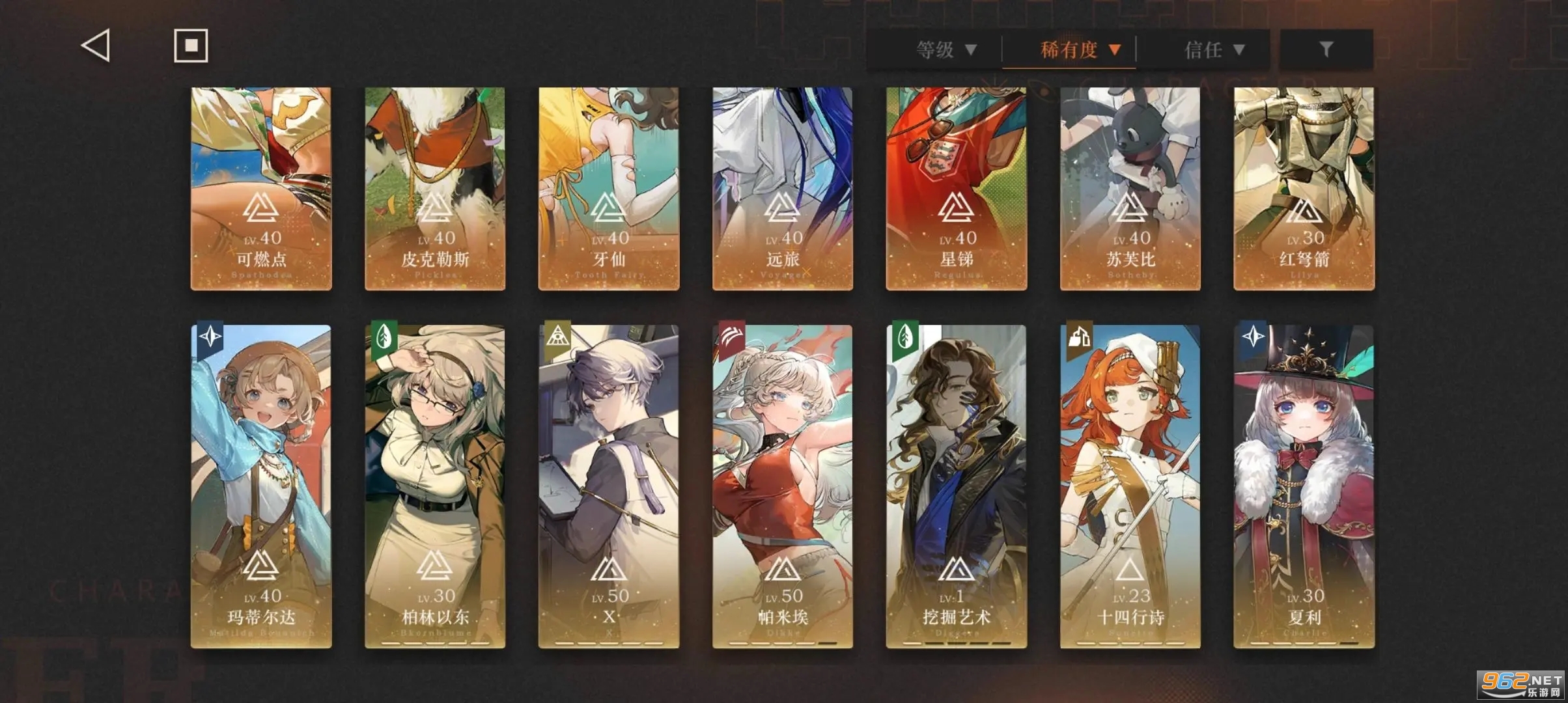 维尔汀Vertin (你 饰演) / 十四行诗Sonetto / 星锑Regulus / 槲寄生Druvis Ⅲ / 苏芙比Sotheby / 斯奈德Schneider / APPLe / X / 阿尔卡纳Acranum / 勿忘我Forget Me Not / 魔精……