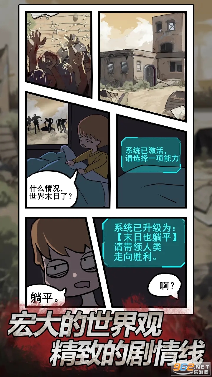 这是一款操作简单,内容有趣的多梗Roguelike游戏,玩家在末日到来时解锁了躺平系统,别人在夹缝中生存,而你只需要躺着就能收获物资!