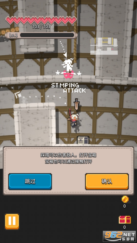 一款有趣的像素横版闯关游戏,游戏的玩法轻松有趣,你只需要点击左右来控制角色的移动,游戏中你需要通过跳踩来进行攻击,同时在地城中还可以收集材料打造装备,推荐给喜欢闯关游戏的玩家。