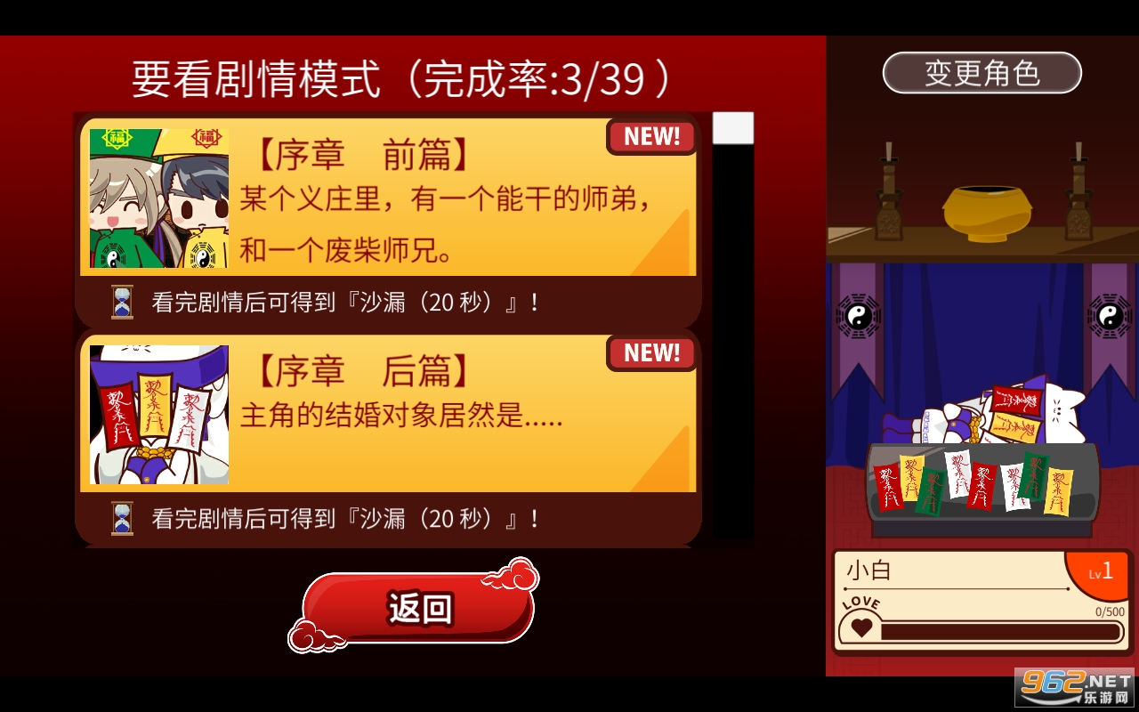 《阴阳之恋游戏》是一款玩法很不错的消除加上剧情闯关的游戏,丰富的游戏趣味性以及独特的操作玩法能给到玩家们丰富的独特的游戏体验,可以更换不同的角色进行挑战,感兴趣的亲们赶紧下载吧。