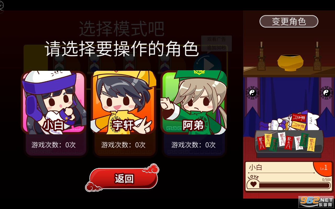 2、选择自己中意的角色进行闯关,游戏的次数有限注意节奏。