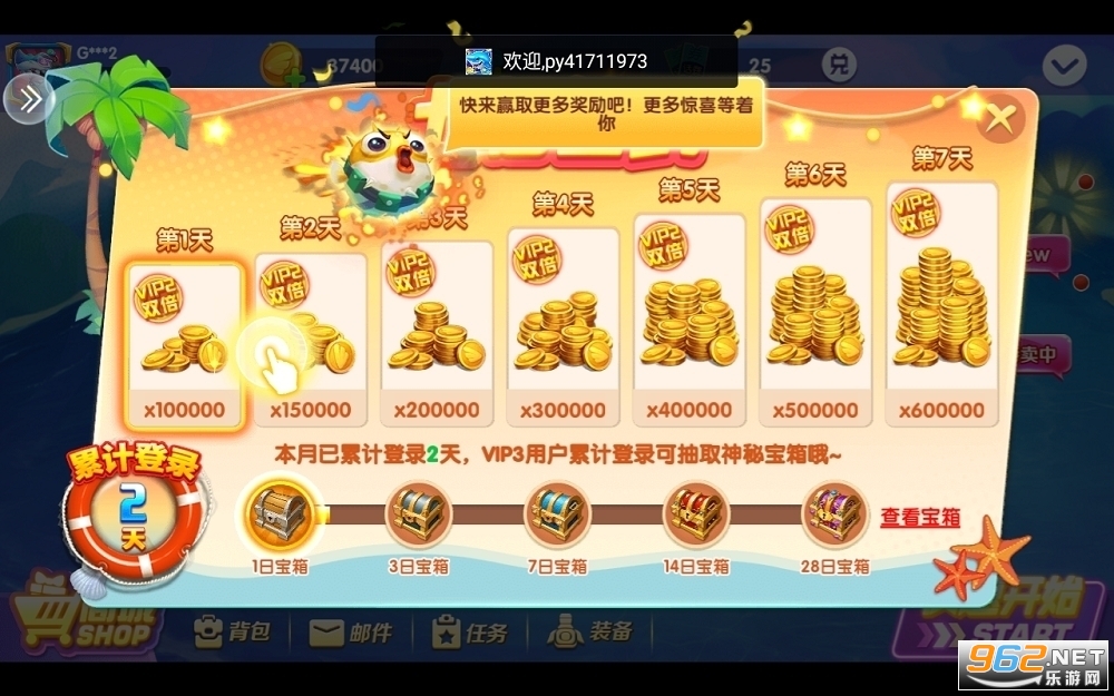 十倍炮、百倍跑、千倍炮,炮台升级,金币无限掉落。专属炮台,只为你来!