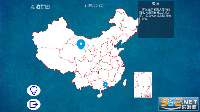 一款中国地理地图的拼图游戏。点击同时能够发声提示。另外,对于比较小的直辖市不方便拖动时,可以放大。集趣味性,娱乐性于一体。在玩游戏的同时,很短时间就能熟悉并记住中国各省份/自治区/直辖市,省会城市等的名称,位置,形状,名称由来。