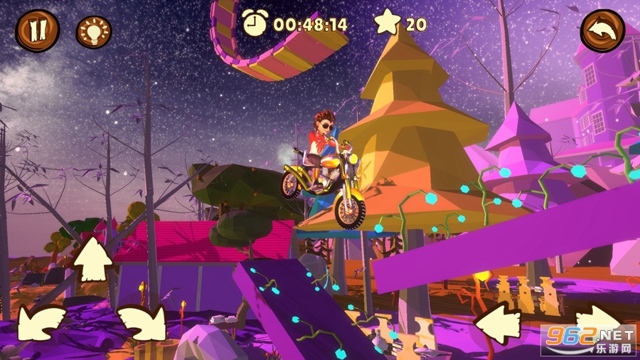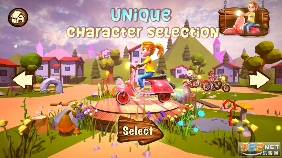 玩家可以通过完成关卡获得星星来解锁新的骑手(车辆),还可以使用 X3 将等级收益乘以三倍,还可以使用旋转器来获取硬币和心。