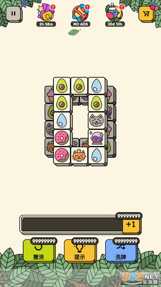 首先,你需要把3个方块有相同图案的方块配对。你可以点击它们并将它们堆叠成摞。3个相同的方块会被配成一组,并被从堆积的方块中移除。