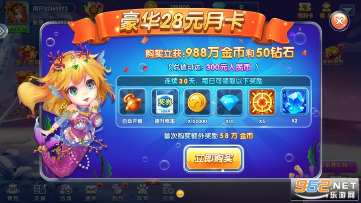 4、新增特殊鱼:新增女财神,多个渔场都可召唤财神,捕获百分百掉落财神令,可在凌晨瓜分奖池