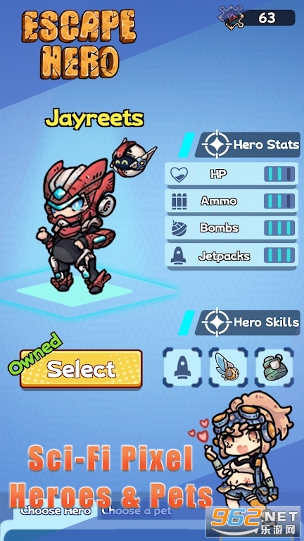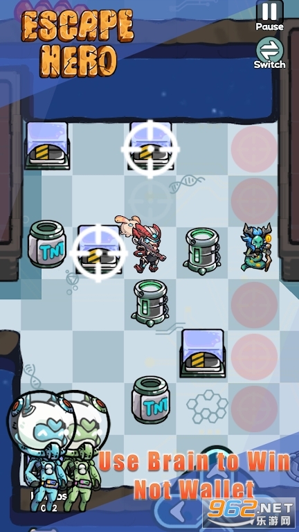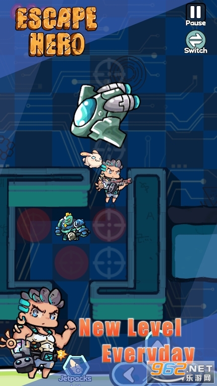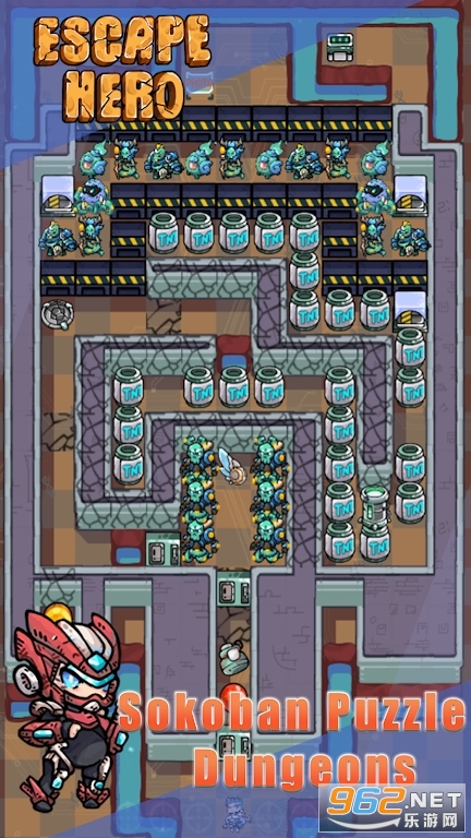 在《Escape Hero》中释放你的脑力!扮演赛博朋克像素英雄的角色,穿越科幻推箱子迷宫、解救人质并击败外星怪物。