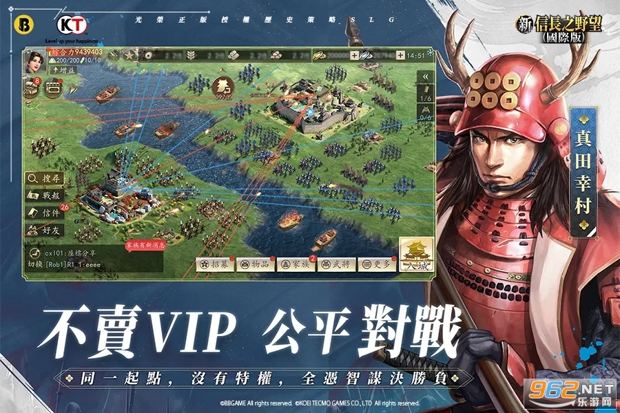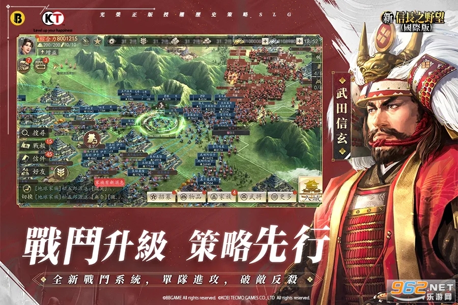 一款光荣特库摩正版授权的历史策略SLG游戏,它的特色包括打破地域限制、重制武将养成和策略、升级战斗系统和取消VIP系统等。游戏注重策略搭配和战斗细节,让玩家可以通过策略和实力来决定胜负。同时,游戏还支持全球同服,百盟联军进行大规模合战,让玩家可以联手并进,合纵连横,为同盟而战。如果你喜欢历史策略SLG游戏和挑战自己的策略能力,那么「新信长之野望(国际版)」绝对是一个值得尝试的游戏。