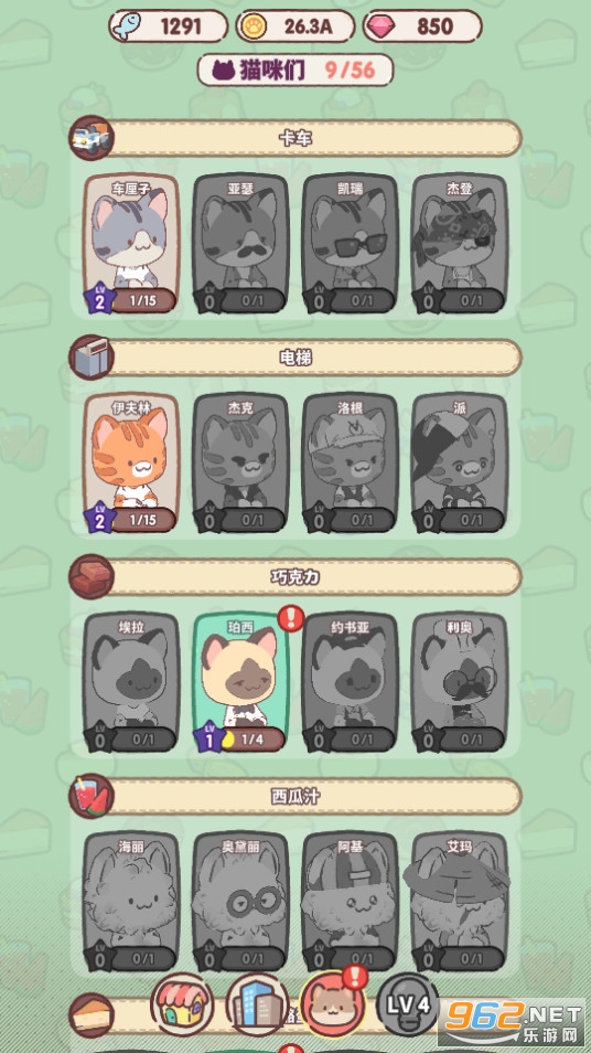 2、每一层都可以建造不同类型的甜品作坊,非常多的猫咪角色可以让你去选择制作各种各样的甜品。