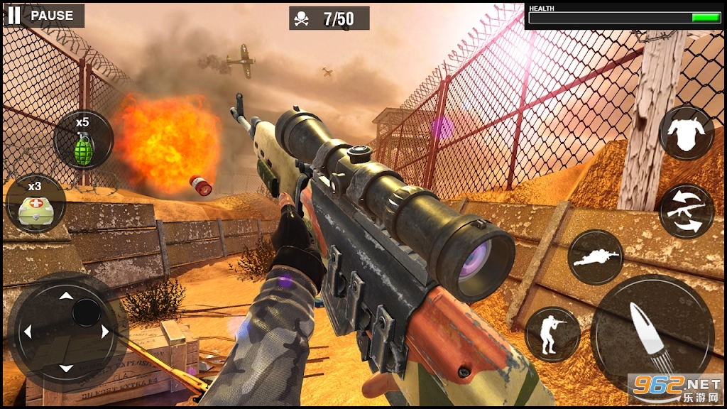 第一人称射击游戏卓越:体验FPS(第一人称射击游戏)的游戏玩法。无论是远程射击还是近距离战斗,您的战术世界大战技能都将在狙击战争中进行测试。