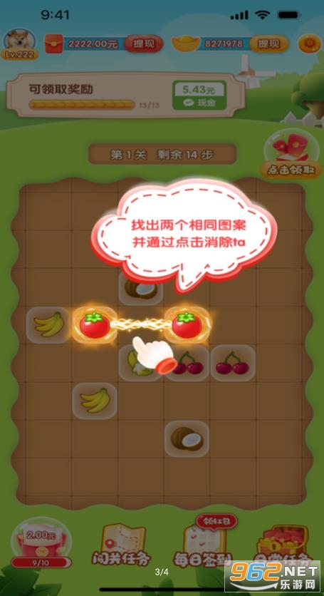 三消版本,玩两关就可以提0.3元。玩家可以在游戏中消除各种水果,获得红包奖励。游戏画面精美,操作简单易上手,适合各年龄段的玩家。