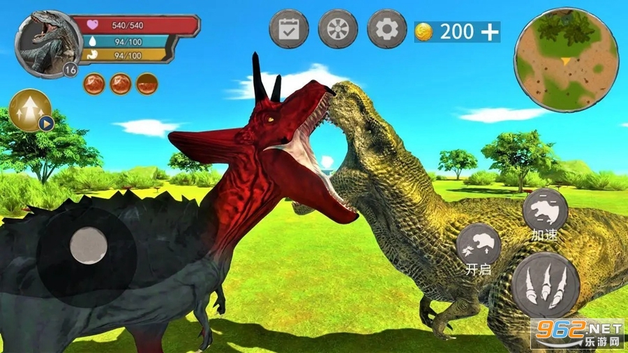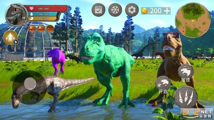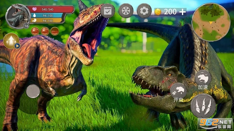 1、探索这个虚拟世界,体验精彩的冒险,自由操控恐龙去进行不断的作战;