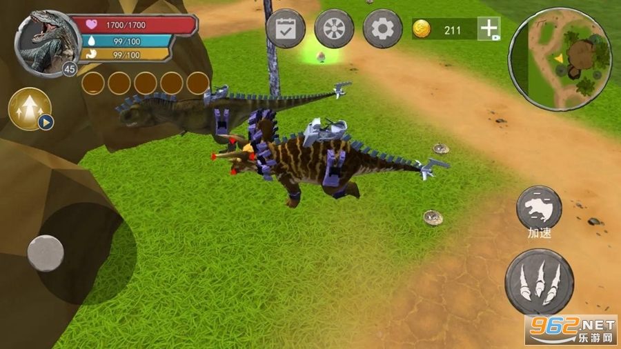 1、拥有丰富的武器装备,如利爪、牙齿等,玩家可以使用这些武器来进攻其他恐龙或保护自己。