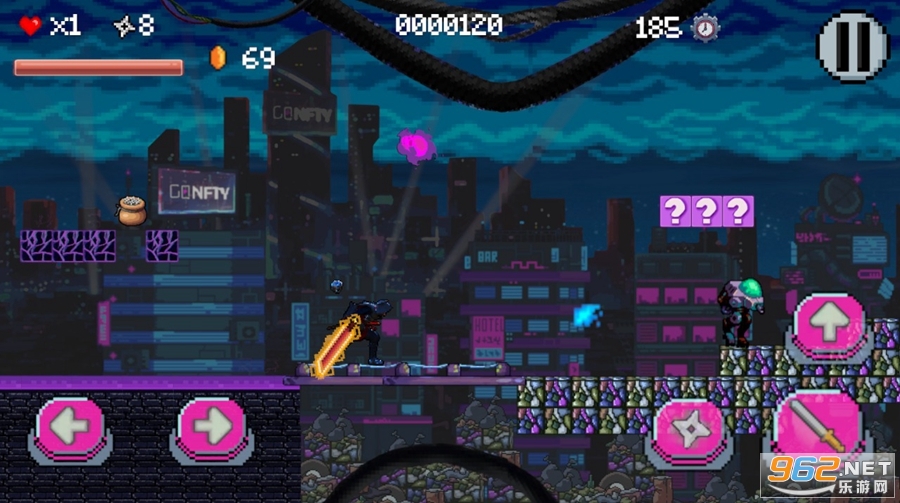 在"赛博武士像素英雄"的反乌托邦未来中,玩家将扮演控制论武士的角色,手持锋利的刀片和一系列独特的技能。这款2D像素艺术杰作将砍杀动作与平台游戏无缝融合,让玩家沉浸在一个被神秘疾病困扰的霓虹灯浸透的世界中。这种疾病已经将曾经的人类生物变成了噩梦般的控制论憎恶,你的任务是清除世界上这场数字瘟疫。