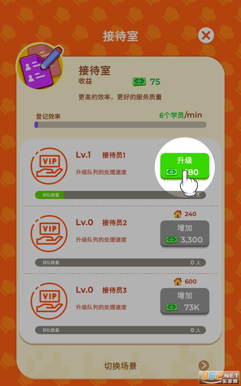 3.游戏开始时,你只有最基本的教学设施和少量学生,通过不断的经营和发展,吸引更多人来学厨。