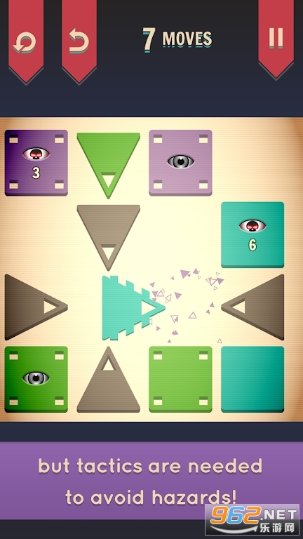 玩家必须通过移动的方式,来让三角形对相同色眼物体进行消除;