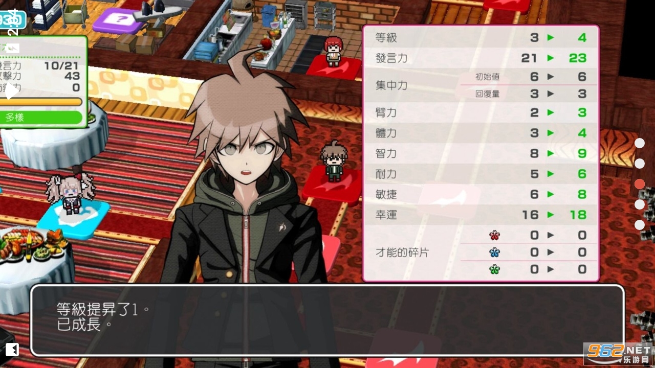 每个角色都有不同的统计数据,包括等级。通过升级、在成长广场停留或与事件广场上的其他角色互动来提高角色统计数据。