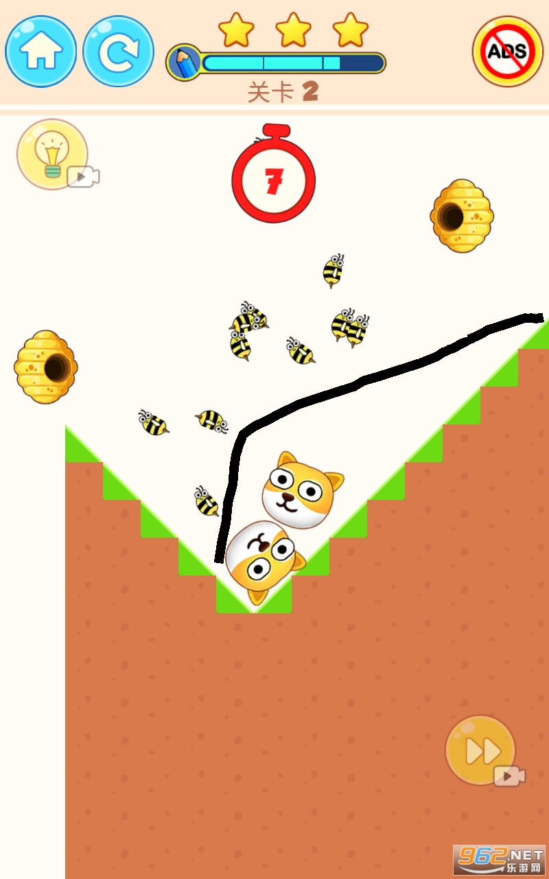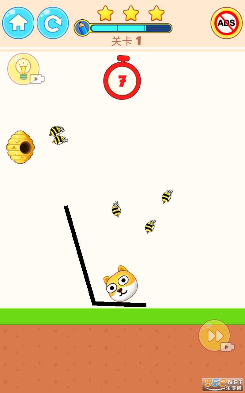 3、海量关卡,给您惊喜,必须在10秒内画好线条,保护狗头。
