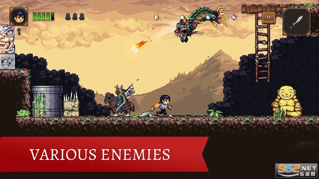 准备好与邪恶战斗并拯救世界了吗?东方之影是一款 2D 像素艺术动作冒险平台游戏,具有完全可定制的触摸控制、流畅的动作和流畅的动画。探索充满秘密、任务和战利品的广阔关卡。使用道剑在成群的武士敌人和神话生物中杀出一条路,或使用远程武器在远处击退敌人。
