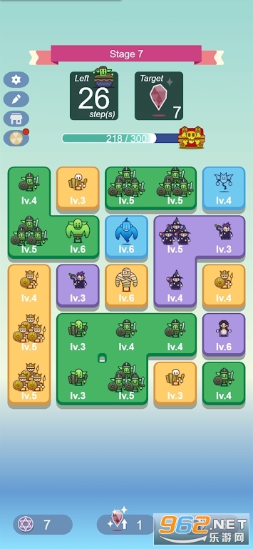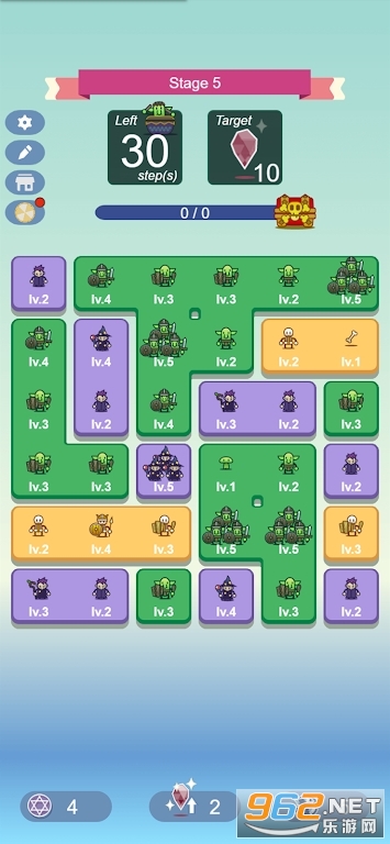 游戏规则十分简单,玩家需要合并相连的方块来升级怪物,当怪物达到10级就会变为钻石,在规定步数内收集指定数量的钻石即可过关。