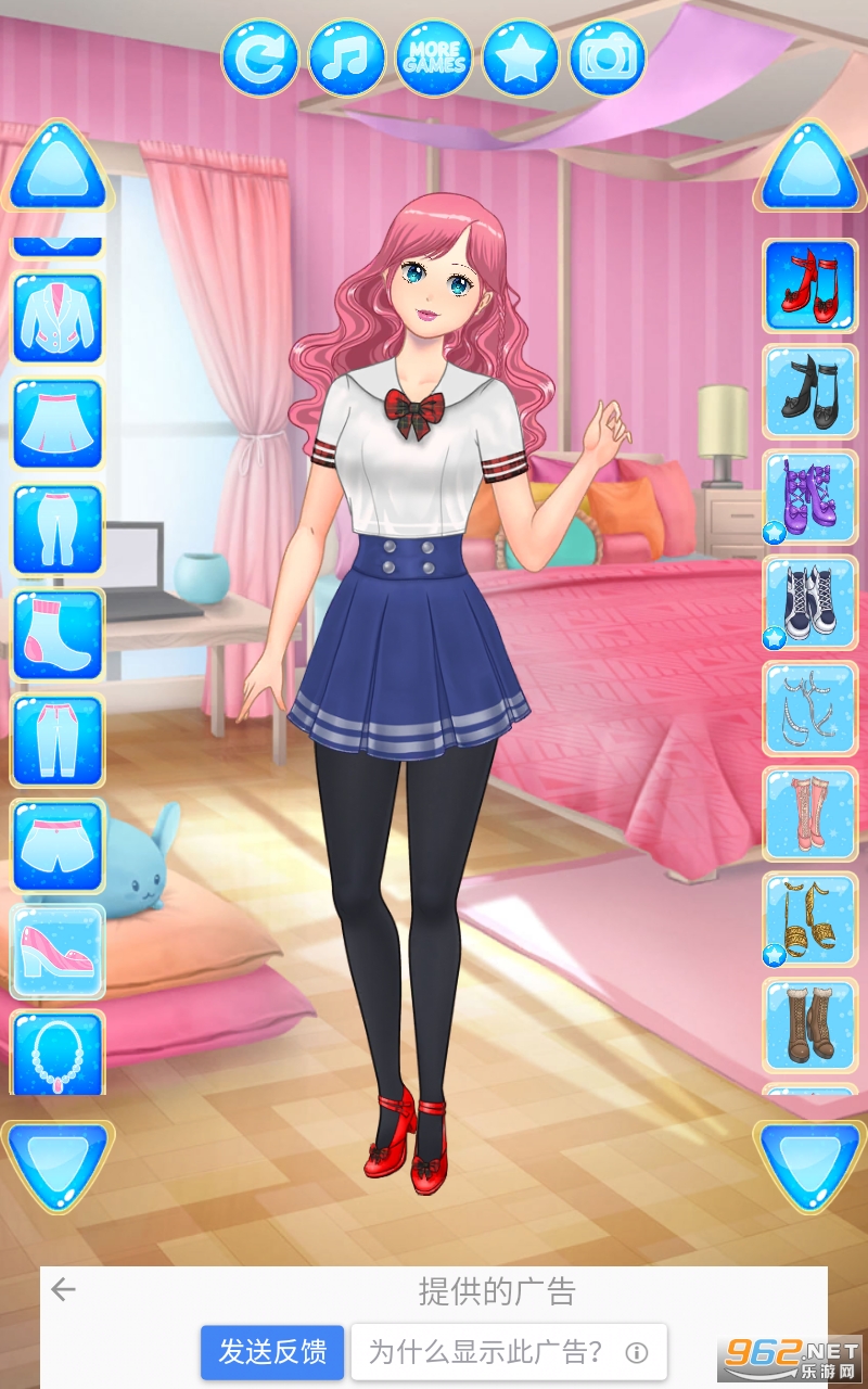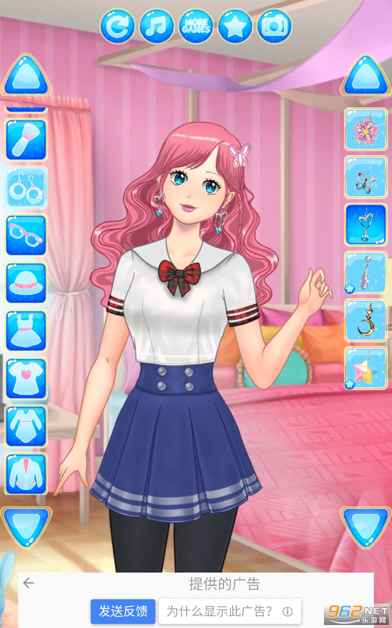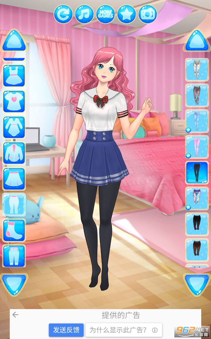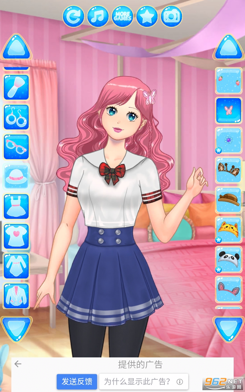 从 4 种肤色中选择模型少女的肤色,挑选面部特征、捏脸、妆容和头发,然后翻阅大量时尚服装,以训练你在动漫游戏中的时装设计师技能。萌时尚达人的衣橱,有各种各样的连衣裙、上衣、裙子、裤子、短裤、夹克、校服、珠宝、帽子、包。从数以百计的服装文章中寻找角色,打造美丽、超级可爱的女学生造型。在我们的游戏中还可以找到可爱的宠物(狗、猫等)。