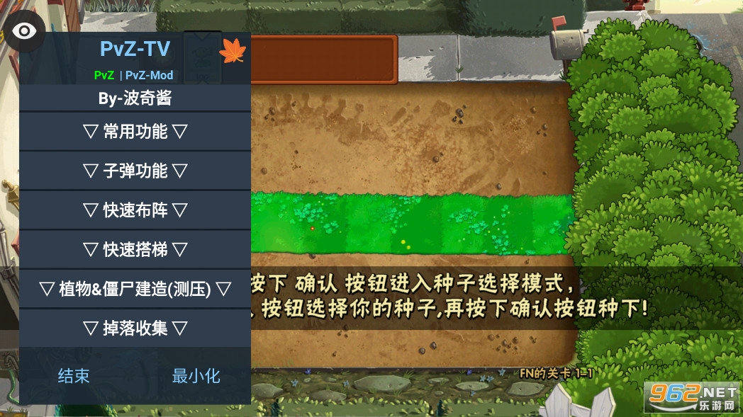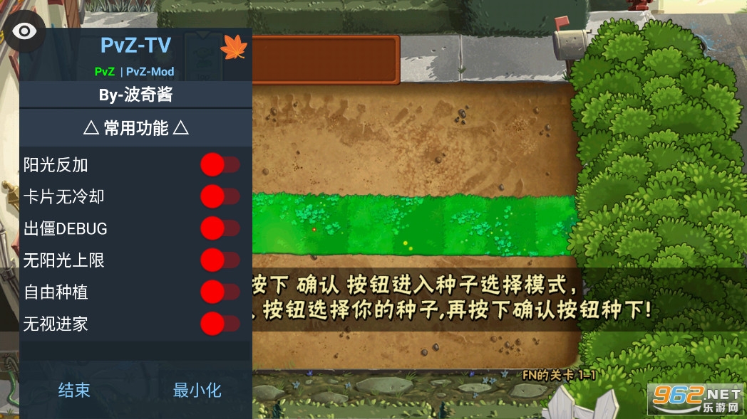 《植物大战僵尸FN版内置菜单(PvZ FN)》是一款经典的塔防闯关手游,游戏中玩家可以使用豌豆、坚果等各种植物来抵御僵尸入侵,有着众多的关卡可以挑战,游戏已修改,内置菜单,玩家可以开启各种作弊功能,比如阳光反加、重叠种植等,可以轻松的抵御僵尸。