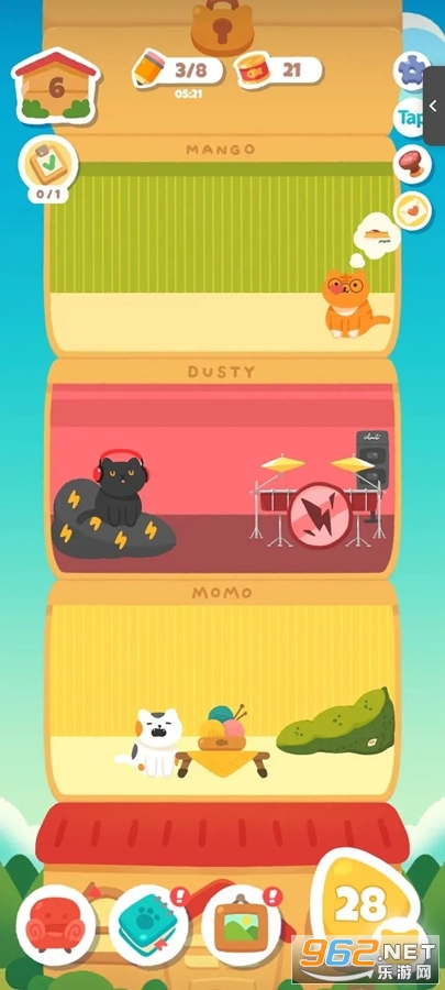 2、养猫互动:除了数涂,玩家还可以养猫并与猫咪进行互动。每只猫咪都有自己独特的个性和需求,玩家需要照顾它们的饮食、洗澡、玩耍等。与猫咪建立亲密关系将带来更多乐趣和奖励。