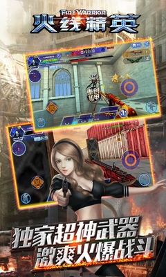《火线精英》是一款FPS竞技射击手游,游戏采用便携的双摇杆操作,全3D视角,玩家可以自由控制移动射击。完美兼容手机与WIFI网络,实现4V4等多人对战。除爆破、生化等多种竞技模式外,游戏与众不同的机甲模式,独有的科幻风格,让玩家可以变身为战力爆表的酷炫机甲,让你的敌人闻风丧胆!另外还有千种枪械、百张地图任你挑选,尽情发挥你的战斗狂热。还在等什么?马上加入《火线精英》手机版,开始你的火线争霸之路吧!