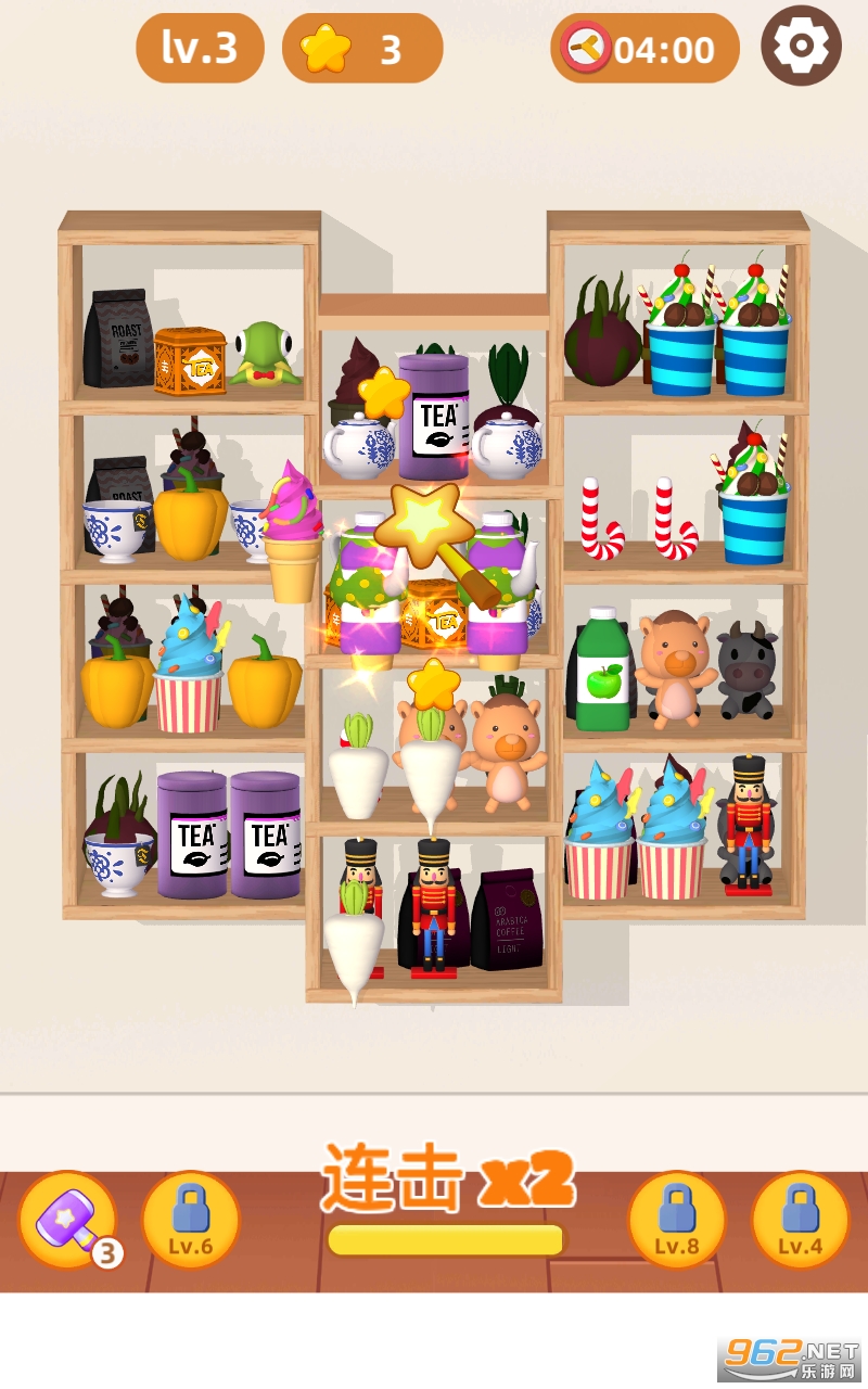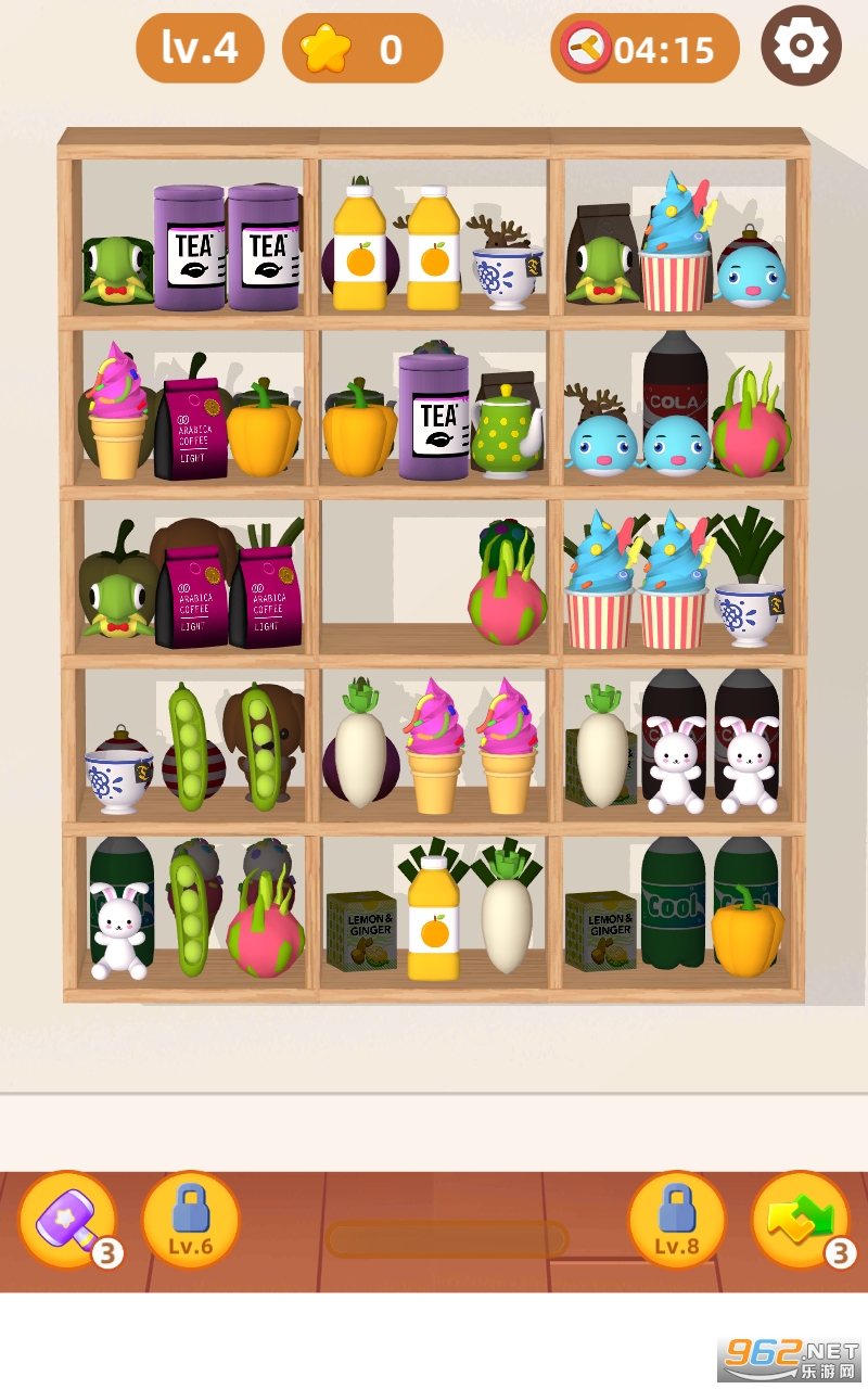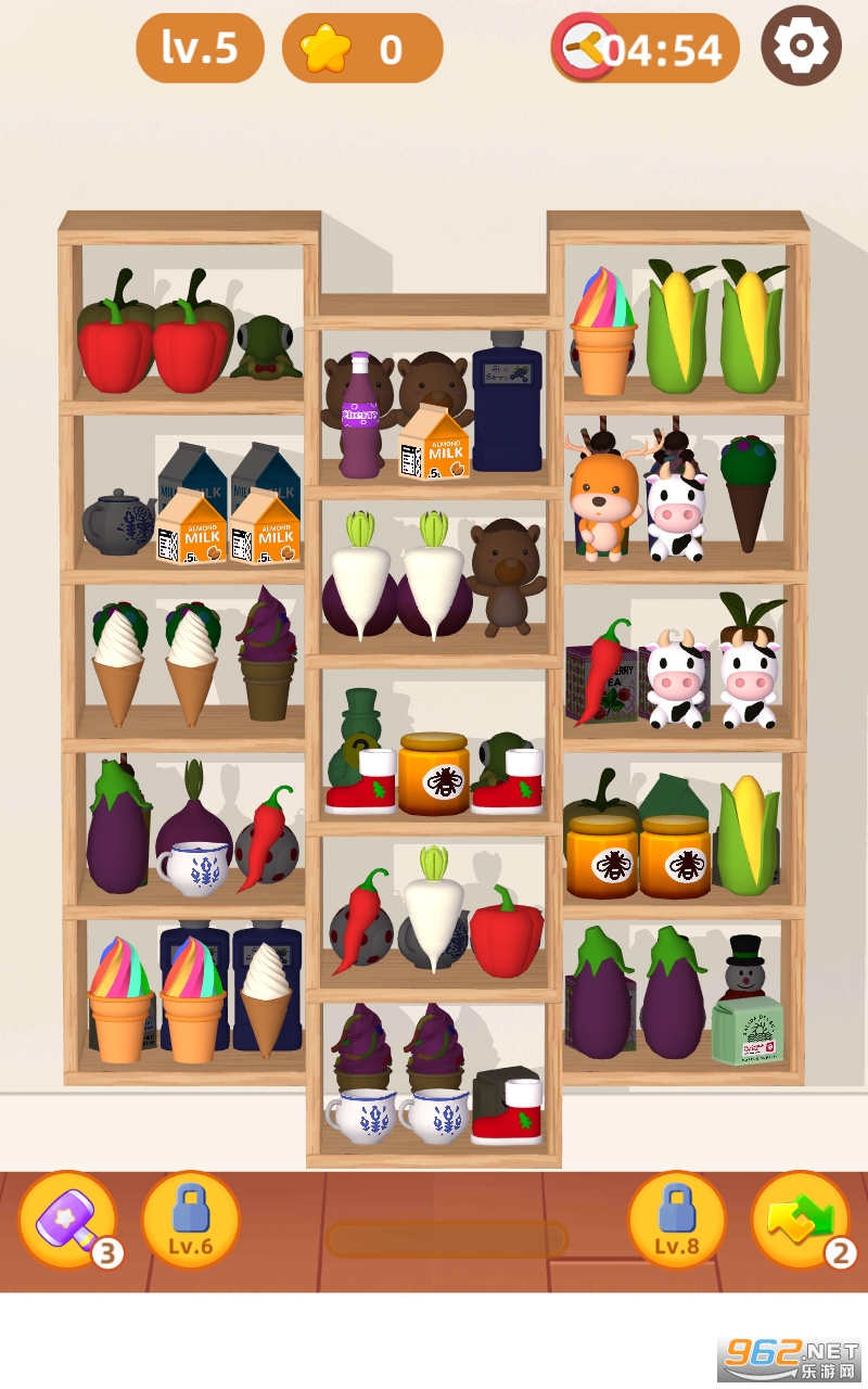 排序与合成这是一款特别有趣的休闲益智类游戏。玩家在游戏过程中不断参与各种脑力挑战。用你灵活的手指仔细观察这个架子上的所有物品。你需要通过排序来合成相同的对象,然后完成消除。相对简单自由的三消游戏模式,可以随时使用。太无聊了。