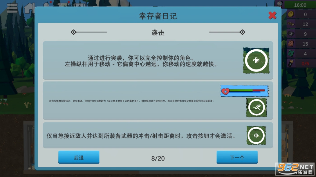 2、学习游戏中的各种技巧和操作,您可以在充满危险的森林中生存下来。