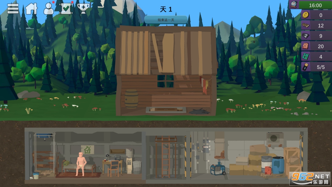 白天,您需要安排新的避难所,建造防御工事,增加房间,并四处走动寻找资源、食物、设备和武器。