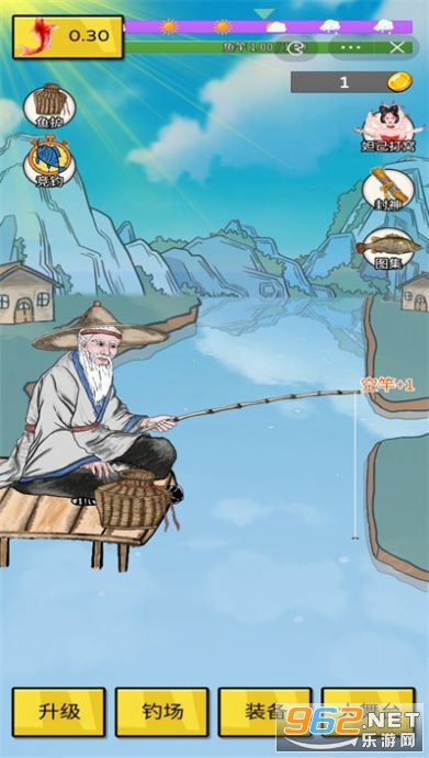 1、玩家将扮演姜太公,通过设定好的钓鱼区域,尝试抓住各种不同的鱼类。