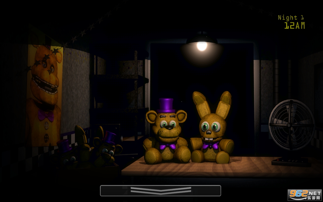 辉煌的过去1,里面有四个玩具要防御,黄金邦迪出现在门口不用管他,等他贴脸的时候打开监控点舞台的那个放音频的按钮他就会回到舞台,黄金霍斯要用手电照他,弗斯熊等他贴脸时打开监控点左上角的按钮点击警报他就会回去,骨架也是一样点左上角的按钮按那个火,不能常按,负责会跳杀,看感叹号就去防御。