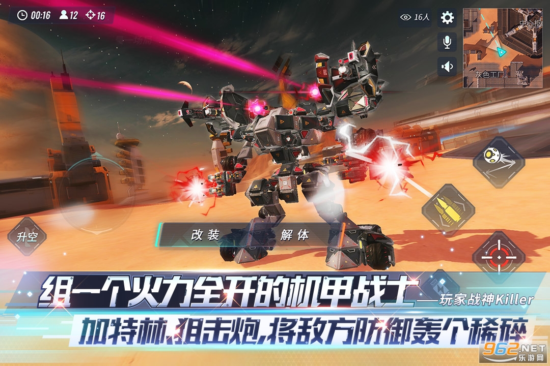 4、多人组队,激烈团战。团队配合,相机行事,设计你的战斗机器,引领团队走向胜利!
