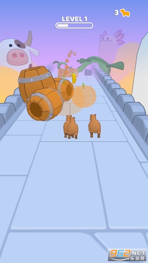 1.在这款游戏当中,玩家要操控一群水豚向终点冲刺。