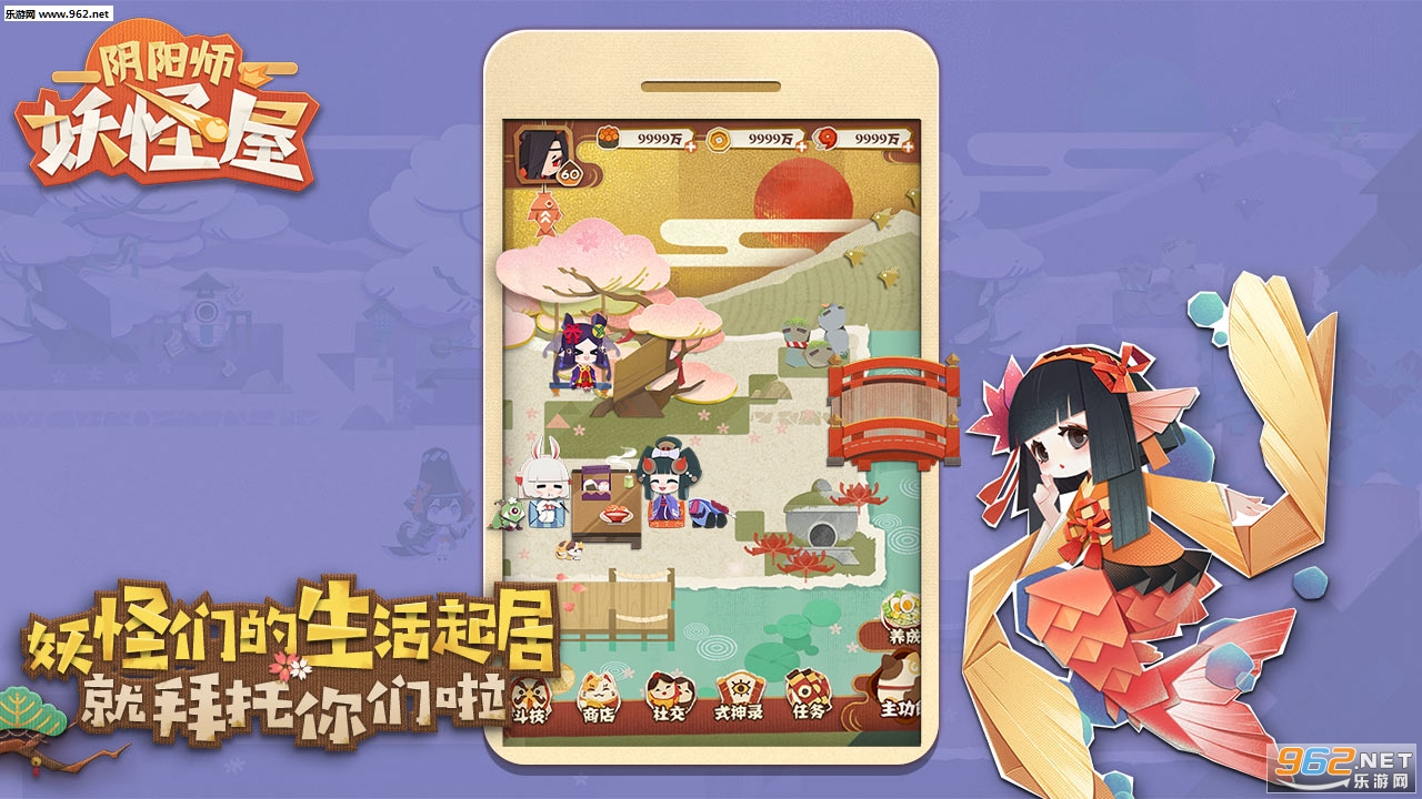 家主大人将在奇妙的剪纸庭院中照看妖怪们的生活起居,还将与各式Q弹妖怪并肩作战…优哉游哉的和风妖怪,轻松休闲的个性养成,趣味无穷的庭院互动,带你体验妖怪屋的奇趣生活!