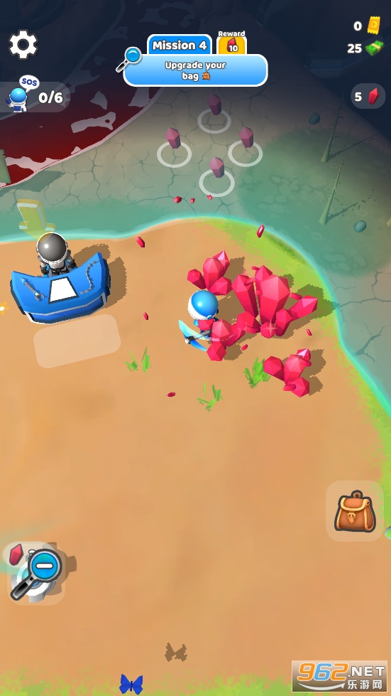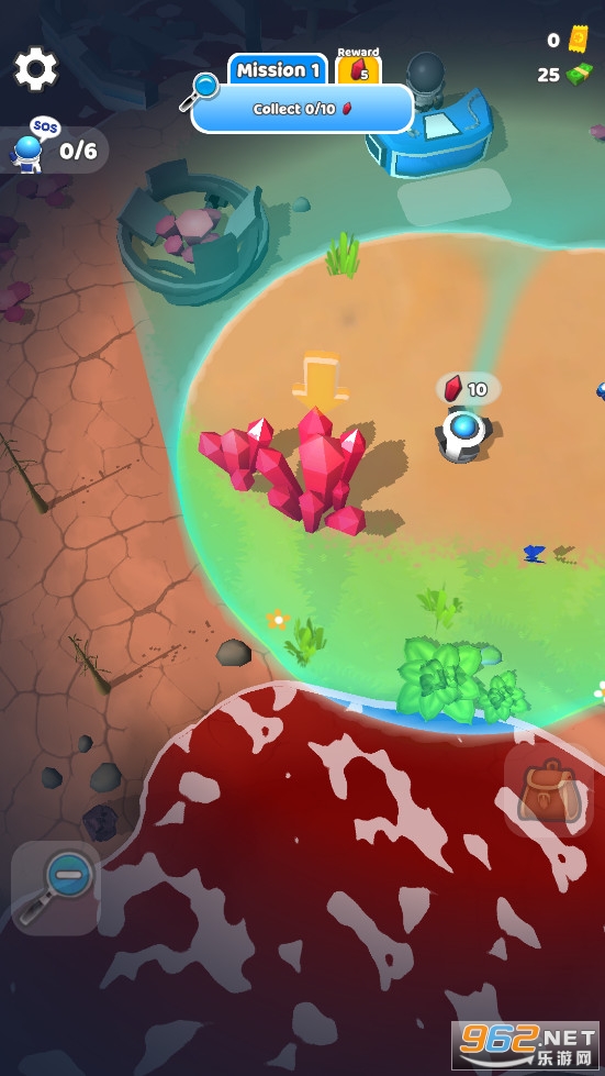 《Life Bubble》采用了3D立体的卡通画风,整体画面清爽明亮,每一种矿藏的分布区域,都被赋予了独特的环境和配色,草原、荒地、海洋、红土,随处可见不同类型的地貌。除了基本的矿藏,星球上还会随机出现许多资源宝箱,提升你的收集效率,让你能够快速完成整个星球的探索。为了完成目标,你需要不停收集各种资源,用于搭建桥梁、换取金钱升级属性,甚至是开启新的资源区域。