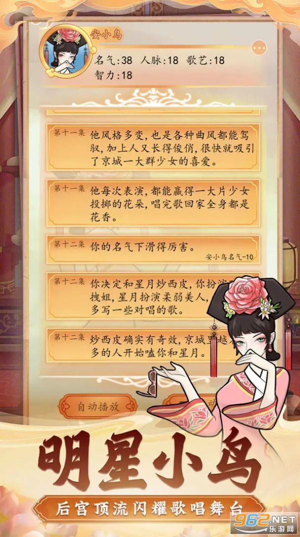 精美的细节设计:角色和场景都经过精心设计,画面细腻、人物形象栩栩如生。玩家可以在华丽的后宫环境中感受到细致入微的视觉享受。