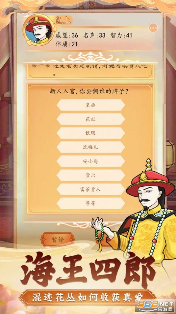 2、根据自己的喜好和性格,选择自己喜欢的后宫人物。